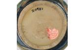 Appena troncoconico, rastremato alla base, con bocca leggermente allargata. Decorazione incisa con grandi maggiolini. Dipinto in verde-turchese e blu. Marchio: grata con giglio stilizzato, scritta "MUGELLO" e n. 326, impressi. Manifattura "Fornaci S. Lorenzo", Borgo San Lorenzo, Toscana. (MIC inv. n. 20187)