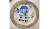 Vasetto ovoidale con breve collo. Decorato con maggiolini. Linea ondulata alla base del collo. Dipinto in blu, rosso marrone, fondo rosato. Marchio: grata entro cerchio e scritta "CHINI E C. MUGELLO ITALIA", nn. 6/2084 e F, in blu. Manifattura "Fornaci S. Lorenzo", Borgo San Lorenzo, Toscana. (MIC inv. n. 20191)