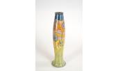 Vaso ovoidale, molto allungato, con orlo appena estroflesso e piede molto svasato. Decorato con narcisi e nuvole. Dipinto in blu, arancio, rosa, giallo e verde. Marchio: melagrana e sigla ADCF in blu, con scritta "FIRENZE", n. 25 e LS entro riquadro in bruno. Manifattura "L'Arte della Ceramica", Firenze, Toscana. (MIC inv. n. 20185)